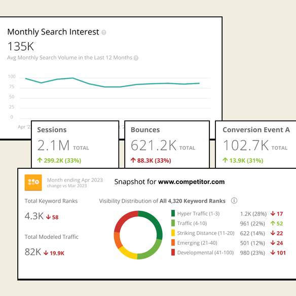 Improve rankings and turn impressions into traffic with the most comprehensive keyword, competitor, analytics, and performance data—all in one place.