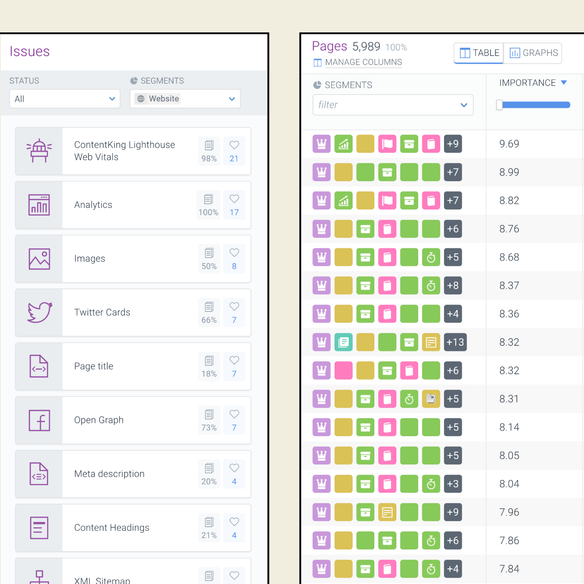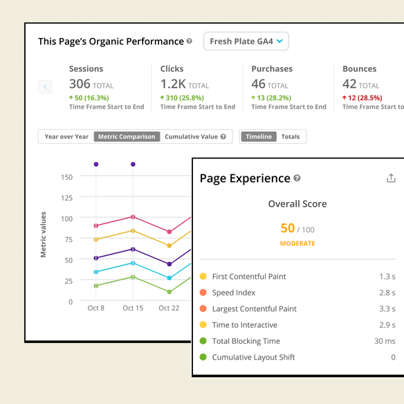 Get the complete picture of website performance with content measurement side-by-side with technical health insights to tie action to impact, make more informed decisions, and seamlessly prioritize optimizations.