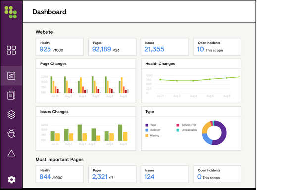 Protect your website at all times with 24/7 detection of critical changes like pages becoming non-indexable, links breaking, unauthorized actions, and e-commerce issues that put your revenue (and reputation) at risk.