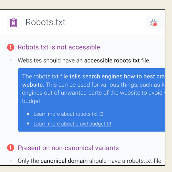 A single robots.txt file mistake can drop your entire site from search engines. Protect traffic and revenue with immediate alerts when your file changes, and travel back in time to compare any file revision.