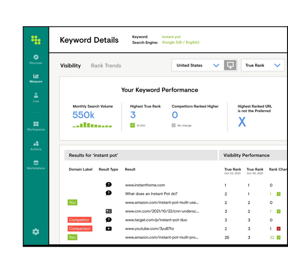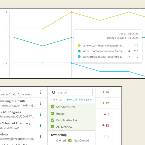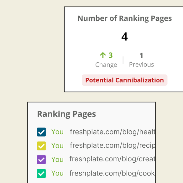 Review all your ranking pages that appear for the same keyword to spot potential issues and boost preferred content higher up the SERP.