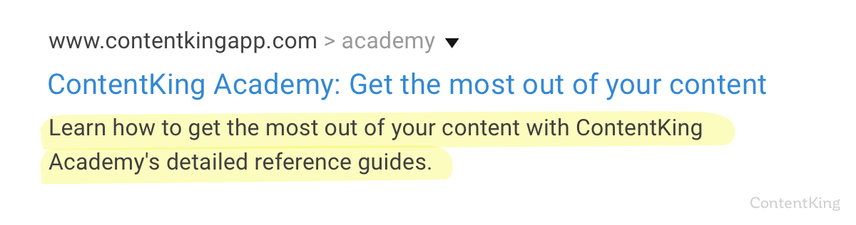 For example, the meta description for our Academy overview page is: