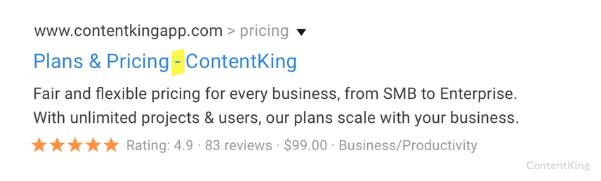 The title tag is often separated from the brand by a distinctive character. It could be a dash (-), a pipe (|) or other separators you’d prefer.