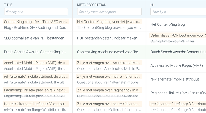 Monitoring websites for technical changes and content changes is one of ContentKing's core abilities. Only with ContentKing can you perform these tasks in just 5 minutes.