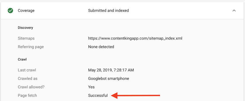 For instance, when we request https://www.contentkingapp.com/academy/protect-staging-environment/ and open the "Coverage" pane, we see it returns "Successful"—which is really the 200 OK status code.
