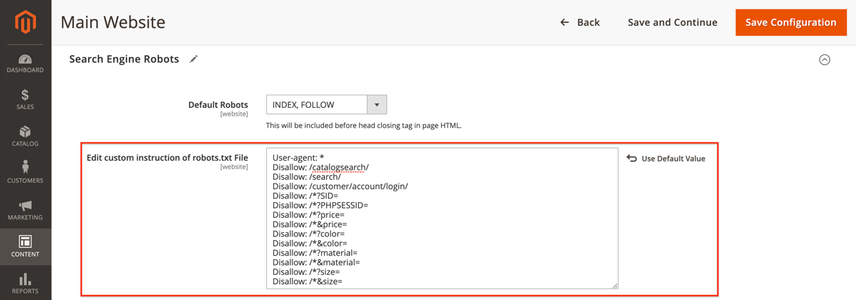 Can I configure the robots.txt in Magento 2?