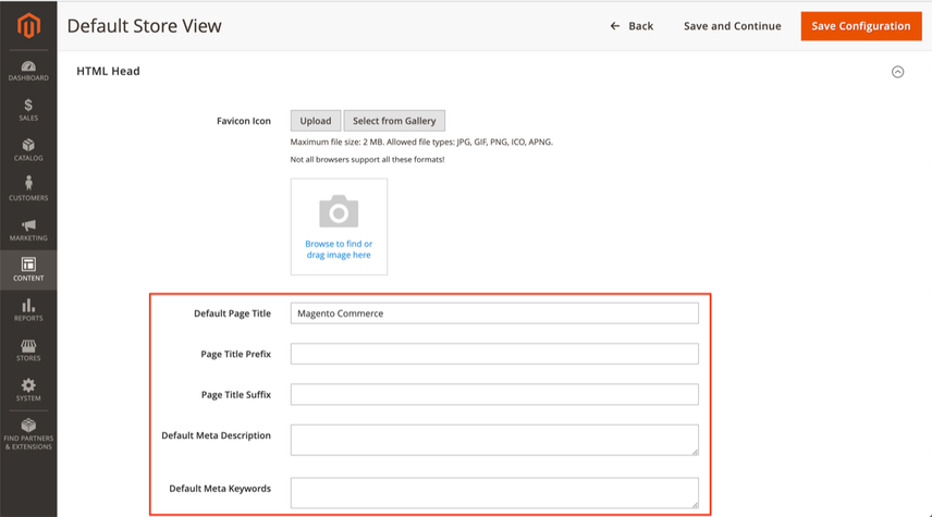 Default Store Viewand click theEditlink after it to adjust the Default Store View homepage’s meta information.