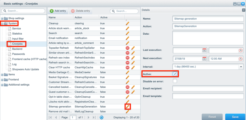 The next step is to go to Configuration > Basic Settings > System > Cronjobs, where you’ll need to activate the cronjob for Sitemap generation: