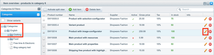 Open the folder of a product’s product category, and then click the pencil icon:
