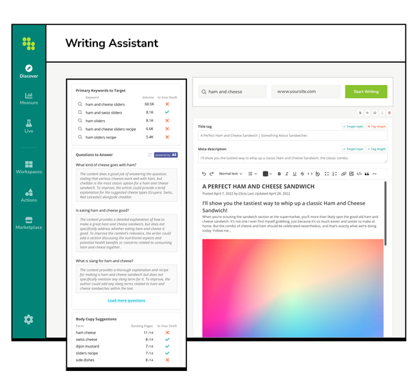 Erkenne Möglichkeiten zur Verbesserung deiner Inhalte - während du sie schreibst. Mit SEO-Empfehlungen in Echtzeit kannst du dir sicher sein, dass dein Content direkt ab dem Go-Live performt.