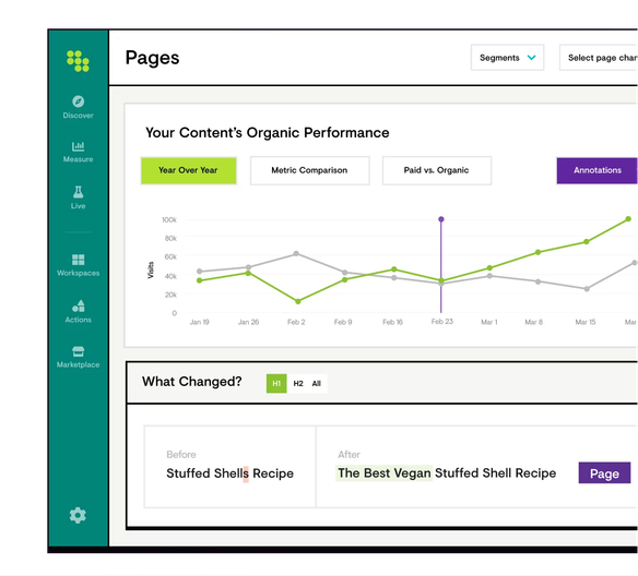 Erstelle Berichte zur Content-Performance und sieh dir die Wirkung mithilfe der automatischen Erkennung von Content-Änderungen an, die die Arbeit deines Teams mit den Ergebnissen in Zusammenhang stellt. Du kannst die Berichterstattung zudem mit anpassbaren Berichten automatisieren.