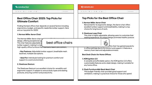 In addition to Conductor, we use SEMrush, Ahrefs, ScreamingFrog, and a few others, and no one is innovating like Conductor is at the pace that your team is doing it… Writing Assistant is able to definitively tell us how close we are and provide actionable recommendations about how to improve it. No other tool has thought to differentiate content to this level.