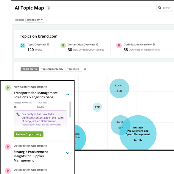 Discover high-impact topic gaps with AI-powered clustering that maps your content coverage against evolving search behavior.