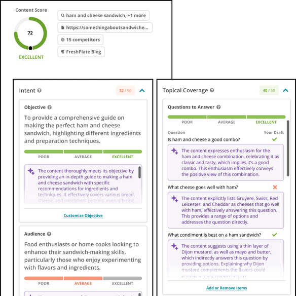 Assess content quality across SEO and GEO best practices, authority, and topical alignment automatically—so every draft has the best chance of success from day 1.