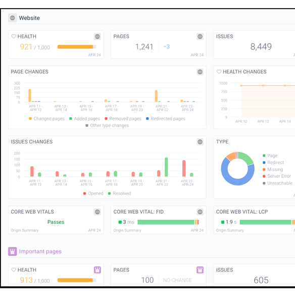 Maximize your impact at scale with intelligent monitoring that instantly prioritizes pages and opportunities based on business importance.