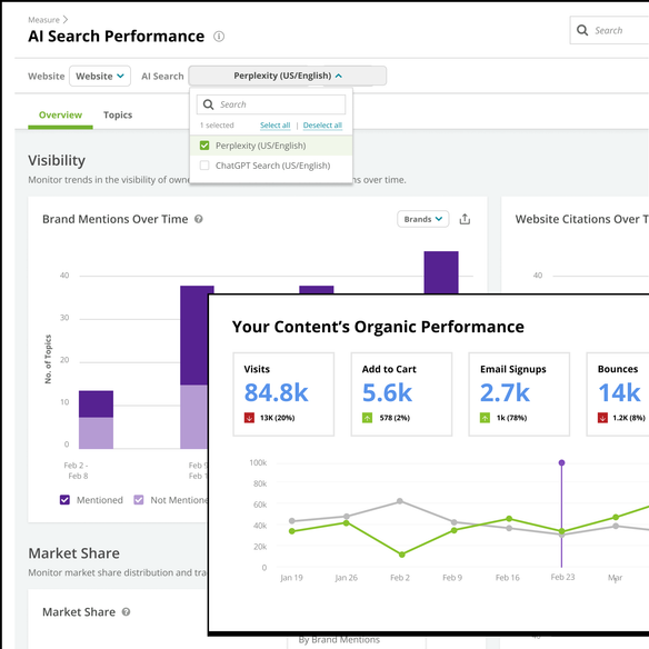 Stop juggling tools that create data silos. Our platform unifies visibility across all of your brands and domains, giving you a complete performance picture to drive your AI strategy.