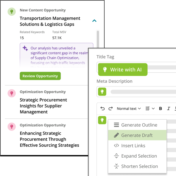 | Workflow coverage | Comprehensive platform to orchestrate your AI-powered SEO & content strategy. | Isolated point solutions. |