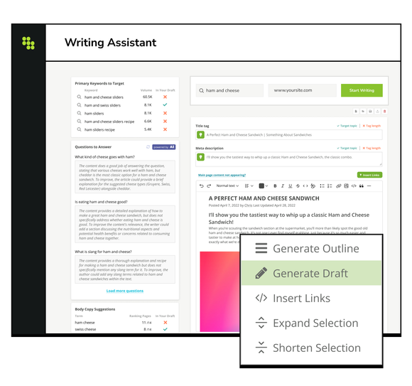 Structure determines visibility. Writing Assistant maps your entire site to surface smart internal link suggestions and auto-generate optimized tags and headers that boost visibility anywhere your audience is searching.