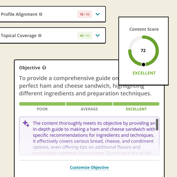 Any AI can generate content—Content Score evaluates whether it’s actually good. Optimize content performance before you publish—evaluating topical coverage, intent alignment, and AI-readiness so you can set measurable, enterprise-wide quality benchmarks.