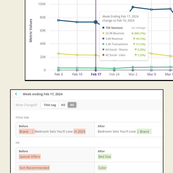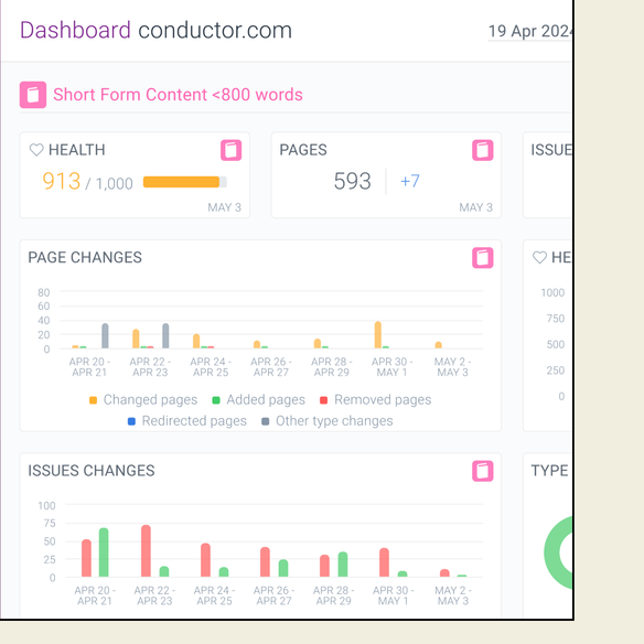 Get a centralized view of rankings, content analytics, and site health—so you can eliminate friction, improve journeys, and prove business impact.