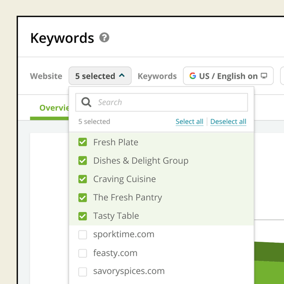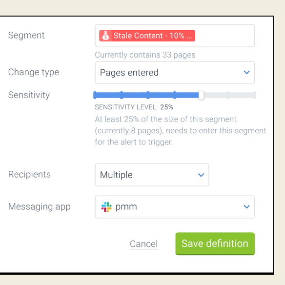 Leverage any data source within Conductor or integration to build fully custom segments across any combination of metrics, business focus, market need, and more.