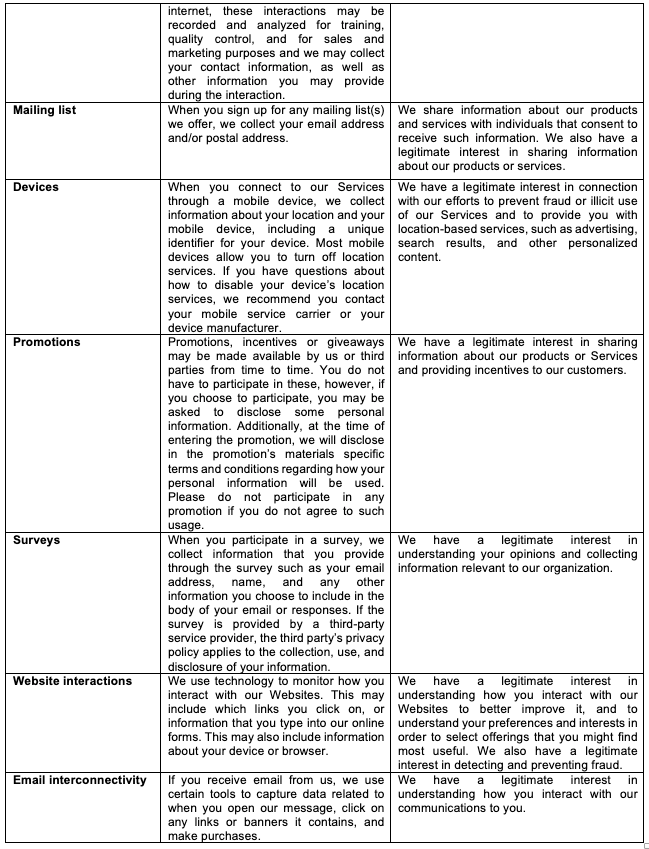 - We rely on our legitimate interests to: