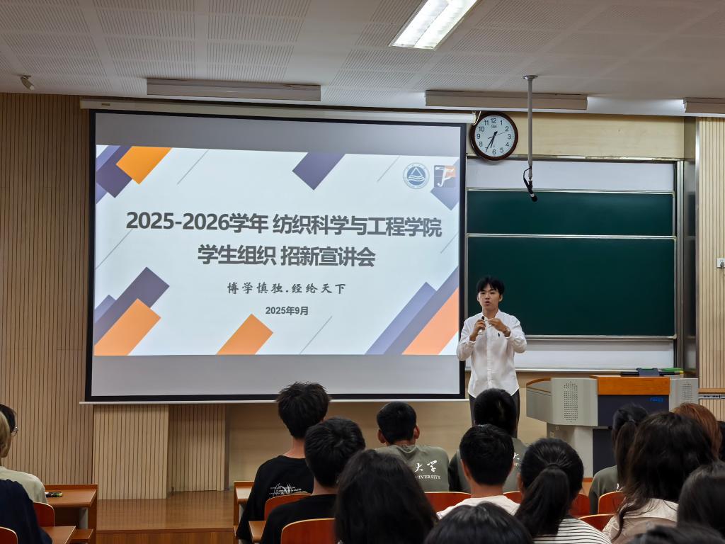 9月13日晚,学院学生组织招新宣讲会于一教1B103教室举行。主持人王生域为学生组织的整体架构与主要职能作了简要介绍。随后,各部门代表依次上台,围绕部门职能、团队氛围、成长路径及招新要求等内容展开宣讲,向2025级新生全面展示各部门特色与发展机遇。宣讲结束后,各部门分别组织初试环节。现场新生踊跃参与、积极互动,在沟通中增进彼此了解,在选择中明晰成长方向。