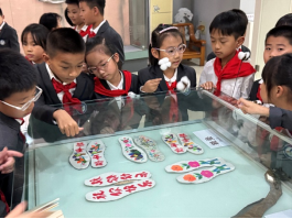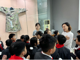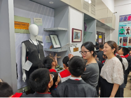 同学们围在展柜前,仔细辨认着不同地域的服饰特点,在指尖与目光的流转间,完成了一场与祖先关于“美”与“智慧”的对话。