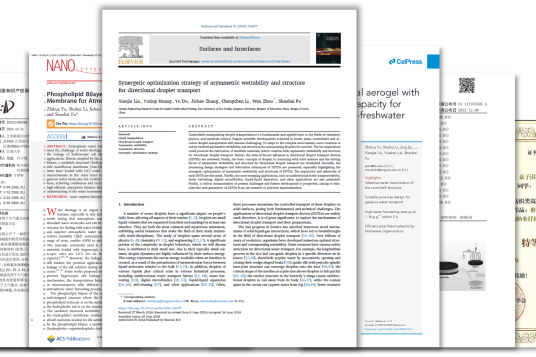 出生于红旗渠畔,他深刻明白极度缺水对一个地区意味着什么,为了进一步缓解家乡的缺水难题,他毅然决然选择加入到大气集水技术攻关团队。经过两年多的日夜奋战,取得了气凝胶大气集水材料的重要技术突破,相关文章也发表在材料领域顶刊——Matter期刊上,相关成果也获国家级媒体重点报道。随着研究的深入,心中逐渐产生了一个疑问:液滴如何实现定向运输呢?于是,他阅读海量文献,刚开始,1篇英文文献需要花费2周时间才能‘啃下来’,经常看3行文献查5次词典,功夫不负有心人,我终于弄清了液滴定向运输机理,并绘制成图,经过150轮的反复修改打磨,将2年多的心血凝练成一篇综述,最终,以第一作者的身份将论文发表在JCR 1区期刊上。